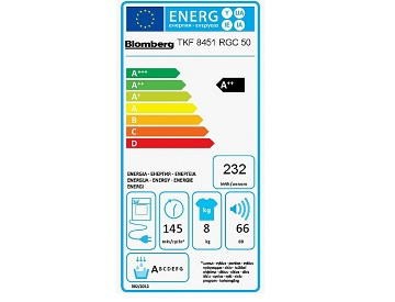 Díky své nízké spotřebě se sušička Blomberg řadí do energetické třídy A++. Buben s vnitřním osvětlením má kapacitu 8 kg a objem 118 l. Během cyklu dosahuje spotřebič maximální hlučnosti 66 dB. Z bezpečnostních důvodů je vybaven rodiči oblíbeným Dětským zámkem ovládacího panelu.