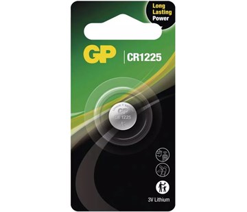 chemické složení lithiové, kategorie/řada Lithium, typ GP CR1225, napětí 3 V, možnost nabíjení ne, kapacita 62 mAh, rozměr 12,5 × 2,5 mm, hmotnost 1,0 g, provozní teplota -20 °C až +60 °C, max. skladovatelnost 10 let, cena za množství cena za 1 ks, prodejní obal 1 ks, blistr, záruční doba 2 roky