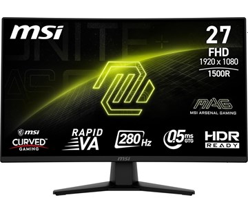 LCD monitor • úhlopříčka 68,58 cm (27") • prohnutý displej Curve 1500R • FHD rozlišení (1920×1080 px) • poměr stran 16:9 • rychlost odezvy 0,5 ms • jas 300 cd/m2 • kontrast 4000:1 • 2× HDMI 2.0b • 1× DisplayPort 1.2a • 1× sluchátkový výstup • obnovovací frekvence 280 Hz • HDR Ready • AMD FreeSync Premium • pozorovací úhel 178° • VESA 10×10 cm