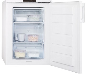 Uvnitř naleznete 3 boxy z průhledného plastu, z nichž jeden je větší k uchování velkých kusů potravin. Její mrazící výkon je 14 kg/ 24 hod a pro rychlé zmražení vašich zásob využijte funkci Frostmatic. Můžete si také nastavit přesně teplotu a elektronické ovládání ji ponechá konstantní a nebude kolísat. Pokud teplota klesne, tak vás na tuto změnu akustická a vizuální signalizace upozorní. Dosažení perfektně vodorovné polohy vám poslouží nastavitelné přední nožičky. Mrazák je vyroben v zaobleném bílém designu s madlem.