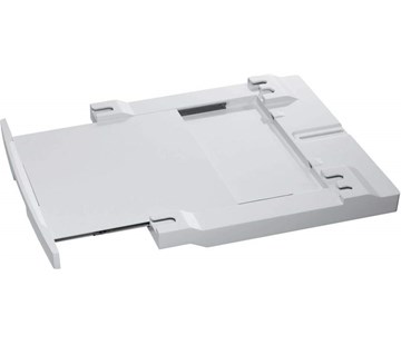 Uložení sušičky na pračku představuje prostorově úsporné řešení. Spojovací sada s výsuvnou policí vám poskytuje praktické místo pro třídění prádla po vyjmutí z pračky nebo jeho složení po vyjmutí ze sušičky.