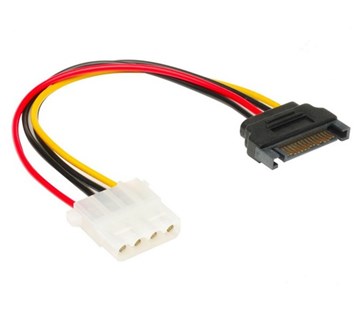 Převádí SATA napájení na 4pin PSU Molex, délka kabelu: 15 cm, PSU konektor: 15pin SATA, Periferní konektor: 4pin Molex