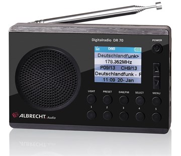| Toto přenosné rádio umí přijímat rozhlasové stanice, které vysílají v klasickém pásmu FM, ale i rádia využívající moderní standard DAB+ (frekvence Band III: 174,0 – 240,0 MHz). Své nejoblíbenější stanice si můžete uložit do vestavěné paměti, která pojme celkem 40 předvoleb (20× DAB + 20× FM). Pro okamžité naladění nejposlouchanějších rádií přitom můžete využívat 5 tlačítek rychlé volby. |  |
