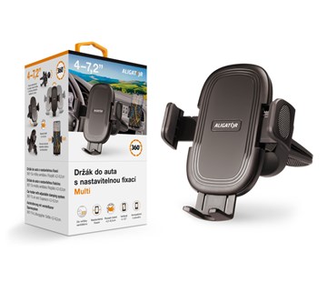 Vlastnosti; • Nastavitelný systém fixace mobilního telefonu; • Možnost umístění do mřížky ventilace; • Nebrání řidiči ve výhledu ; • Rozpětí ramen: 4,2cm – 8,3cm ; • Kompatibilní se všemi pouzdry mobilních telefonů ; • Nastavitelná (výsuvná) spodní čelist ; • Průchodka pro připojení nabíjecího kabelu