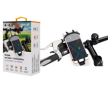 Univerzální držák na řídítka kola/koloběžky nebo kočárku z flexibilního gumového materiálu. Upevnění mobilního telefonu pomocí napínacích a zároveň šetrných gumiček. Spolehlivé a bezpečné uchycení mobilního telefonu ve velikosti 4-6,5“