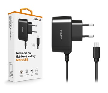 Nabíječka Aligator pro všechny seniorské a tlačítkové telefony ALIGATOR s Micro USB konektorem - Originální síťová nabíječka ALIGATOR s fixním Micro USB kabelem o délce 110cm.; ; Tato nabíječka je ideální pomocníkem pro dobíjení seniorského a tlačítkového mobilního telefonu a jiných zařízení.