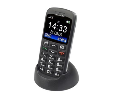 klasický mobilní telefon • 2,2" TFT displej • rozlišení 220×176 px • paměť na 100 kontaktů a 50 SMS • podpora microSD až do 32 GB • zadní VGA fotoaparát • Bluetooth • FM rádio • přehrávač hudby a videa • budík • svítilna • kalkulačka • kalendář • 900mAh baterie • microUSB • SOS tlačítko • nabíjecí stojánek