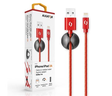 Datový kabel ALIGATOR PREMIUM 2A, Lightning červený - ALIGATOR PREMIUM jsou špičkové USB kabely v nejvyšší kvalitě s možností rychlého nabíjení 2A.Součástí balení je nalepovací organizér s jehož pomocí můžete uspořádat své USB kabely.