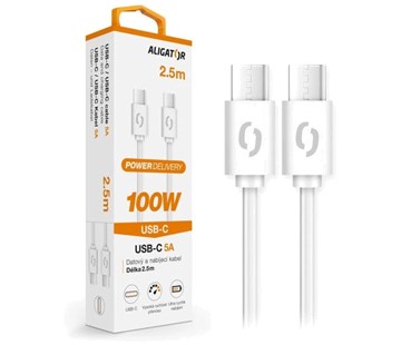 Datový a nabíjecí USB-C /USB-C kabel; Ultra rychlé nabíjení: 5A; Power Delivery až 100W; Vysoká rychlost přenosu dat; Vysoce kvalitní konektory; Flexibilní a odolný; Délka: 2,5m; Barva: černá, bílá
