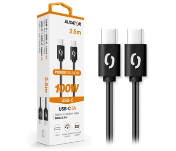 Datový a nabíjecí USB-C /USB-C kabel. Ultra rychlé nabíjení: 5A; Power Delivery až 100W; Vysoká rychlost přenosu dat; Vysoce kvalitní konektory; Flexibilní a odolný; Délka: 2,5m; Barva: černá, bílá
