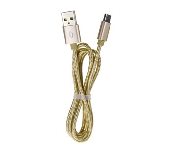 Datový a nabíjecí kabel, Konektor USB-C, Podpora rychlého nabíjení, Délka kabelu 1m, 2A, USB 2.0, Textilní opletení kabelu, Barevné provedení: černá/šedá/zlatá