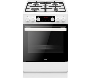 kombinovaný sporák • energetická třída A • 4 hořáky • objem trouby 65 l • 11 druhů ohřevu • dvířka s trojitým sklem • mechanismus SoftClose pro tlumené zavírání • dvoudílná litinová mřížka • horkovzdušné pečení • gril • bezpečnostní pojistka • otočné ovládání • displej • chladná dvířka • 85×50×60 cm