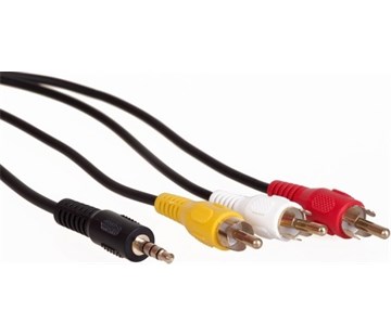 Kabel s konektory 1x 3,5 mm jack stereo - 3x Cinch kompozit video + stereo audio signál, délka 1,5m