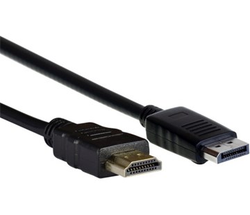 Kabel DisplayPort samec - HDMI samec, délka 2m, podporuje přenos Full HD 1080p, kvalitní stínění pro dokonalý přenos signálu bez rušení, směr signálu: vstup DisplayPort výstup HDMI