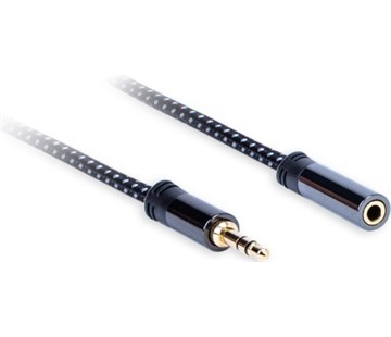 Stereo audio kabel prodlužovací 3,5 mm Jack (M) - 3,5 mm Jack (F),vodič z čisté bezkyslíkaté mědi OFC 99,96 %,perfektní přenos signálu,zlacené kontakty 24K,dokonalý kontakt a dlouhá životnost, kvalitní stínění zamezí rušení signálu,stíněné kovové konektory,venkovní oplet chránící kabel,délka 3 m.