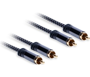Audio kabel 2xRCA (M) – 2xRCA (M) stereo, vodič z čisté bezkyslíkaté mědi OFC 99,96 %, perfektní přenos signálu, zlacené kontakty 24K, dokonalý kontakt a dlouhá životnost, kvalitní stínění zamezí rušení signálu, stíněné kovové konektory, venkovní oplet chránící kabel, délka 3 m.
