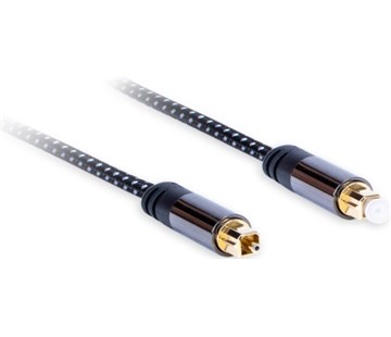 Audio kabel Optický Toslink stereo, optické vlákno vysoké čistoty, precizní zakončení vláken – dokonalý přenos signálu, kovové konektory, kontakty zlacené 24K zlatem, venkovní oplet chránící kabel, pružný přechod mezi konektorem a kabelem bránící překlesání vodiče, délka 0,75 m.