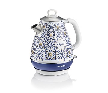 Toužíte po domácích spotřebičích, které na sebe strhnou veškerou pozornost? Rychlovarná konvice Ariete Capri 2869/CA s ručně malovaným vzorem typickým pro jihoitalský ostrov Capri je trefou do černého. Tělo konvice je vyrobeno z vysoce kvalitního nerezu. Tepelně izolovaný plášť, který se skládá ze dvou vrstev a vzduchového prostoru, brání nadměrnému zahřívání vnějšího povrchu. Spotřebiče se tedy nemusíte bát dotknout. K dispozici máte objem až 1,7 litru. Naplnění můžete snadno zkontrolovat na přehledném vodoznaku. |