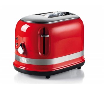 Elektrický topinkovač – červený • na 2 topinky • retro design Moderna • výkon 685 – 815 W • 6 nastavení intenzity opékání • 3 funkce: opékání, rozmrazování, ohřev