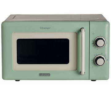 Retro volně stojící mikrovlnná trouba • objem 20 l • výkon 800 W • 5 úrovní ohřevu • minutka na 30 min • skleněný otočný talíř o průměru 270 mm