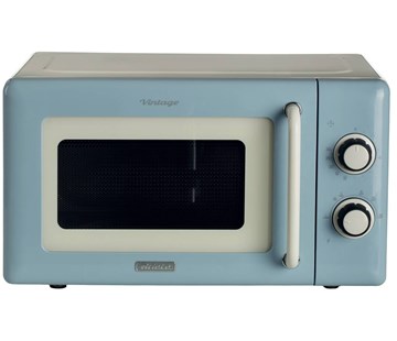Retro volně stojící mikrovlnná trouba • objem 20 l • výkon 800 W • 5 úrovní ohřevu • minutka na 30 min • skleněný otočný talíř o průměru 270 mm