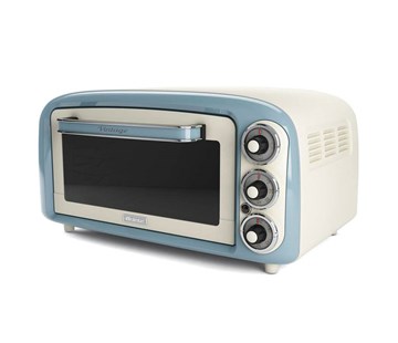 Retro volně stojící trouba • objem 18 l • příkon 1380 W • teplota max. 230 °C • 3 funkcí pečení • minutka na 60 min • v balení plech, mřížka a sběrač drobků