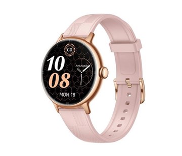 chytré hodinky • 1,2" barevný dotykový AMOLED displej (rozlišení 390×390 px) • GPS • Bluetooth 5.3 • smart notifikace • volání přes Bluetooth • senzor tepové frekvence • měření saturace kyslíku v krvi • výpočet spálených kalorií • monitor denní aktivity, spánku a stresu • režimy pro 100+ aktivit • hlasový asistent • budík • stopky • kalkulačka • výdrž až 7 dní • odolnost IP68/3ATM • určeno pro obvod zápěstí až 22 cm • barva: Rose Gold