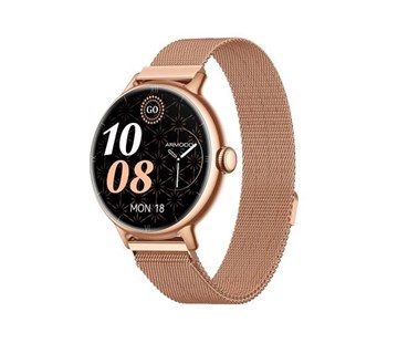 chytré hodinky • 1,2" barevný dotykový AMOLED displej (rozlišení 390×390 px) • GPS • Bluetooth 5.3 • smart notifikace • volání přes Bluetooth • senzor tepové frekvence • měření saturace kyslíku v krvi • výpočet spálených kalorií • monitor denní aktivity, spánku a stresu • režimy pro 100+ aktivit • hlasový asistent • budík • stopky • kalkulačka • výdrž až 7 dní • odolnost IP68/3ATM • určeno pro obvod zápěstí až 22 cm • barva: Rose Gold