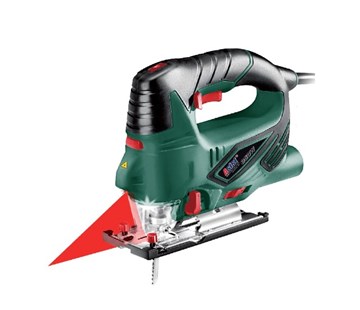 Elektrická přímočará pila výkonem 850W a s nastavitelným úhlem řezání a předkmitem. Může opracovávat ocel, plasty nebo i dřevěný materiál, podle použitého pilového listu. Regulace frekvence kmitání.Šikmý řez 0 - 45°. Železná základna.
