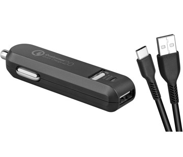 Popis a parametry AVACOM CarMAX 2 nabíječka do auta 2x Qualcomm Quick Charge 2.0, černá barva (USB-C kabel) - AVACOM NACL-QC2XC-KK