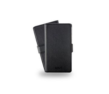Azuri univerzální flipové pouzdro s funkcí stojánku se třemi přihrádkami na platební karty. Po otevření pouzdra pomocí magnetického klipu najdete uvnítř otočnou lepící nano podložku pro přichyceni telefonu, samozřejmostí je přístup ke všem tlačítkům.