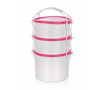 3dílný plastový jídlonosič se 3 dózami o objemu 2 x 1 l a 1,5 l je určený k přenášení potravin a hotových pokrmů. Dózy lze použít i samostatně pro skladování potravin v ledničce, mrazničce a ohřívání pokrmů v mikrovlnné troubě. Dózy jsou vyrobenyz odolného plastu, jsou použitelné při teplotách od -40 do +90 st.C a jsou vhodné do myčky na nádobí.