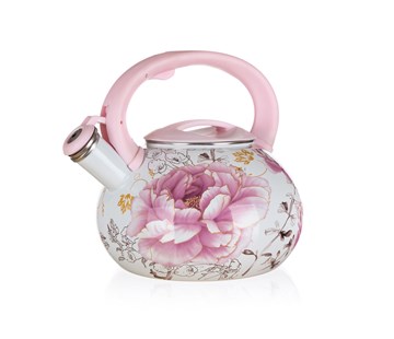 Konvice smalt MAGNOLIA 3 l; Smaltovaná konvice pískací 3 l MAGNOLIA je vyrobena z ocelového plátu s 2vrstvým smaltovaným nástřikem a dekorem ve stylu MAGNOLIA. Má plastové držadlo barevně laděné do designu konvice, snímatelnou píšťalu a dno opatřeno piktogramy o použití konvice.