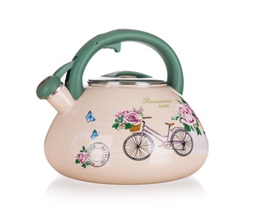 Konvice smalt ROM.RIDE 3 l; Smaltovaná konvice pískací 3 l ROMANTIC RIDE je vyrobena z ocelového plátu s 2vrstvým smaltovaným nástřikem a dekorem ve stylu ROMANTIC RIDE. Má plastové držadlo barevně laděné do designu konvice, snímatelnou píšťalu a dno opatřeno piktogramy o použití konvice.