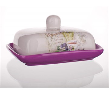 Máslenka keramická LAVENDER, OKMáslenka LAVENDER, fialovo-bílá glazura s dekorem levandule, materiál - keramika, rozměry: délka 17,5 cm, šířka 13 cm, výška 8 cm.