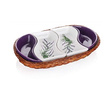 Mísa v košíku LAVENDER 30,5 cm, 4 díly, OKMísa v košíku LAVENDER 30,5 cm, 4 díly v proutěném košíku 30,5 cm obsahuje: 4x miska a 1x proutěný košík. Jedná se o oblíbenou kolekci keramiky s dekorem levandule, kterou můžete doplnit ze širokého sortimentu.