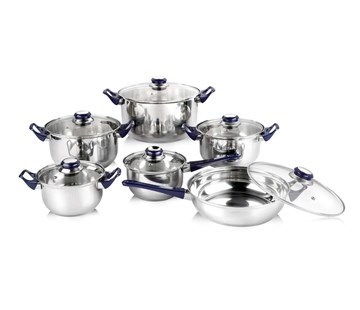 Sada nerezového nádobí CELESTE, 12 ks, barva čirá12dílná sada nerezového nádobí CELESTE obsahuje: rendlík 13,5 x 7 cm, hrnec 15 x 8 cm, hrnec 15 x 8 cm, hrnec 17 x 9,5 cm, hrnec 21 x 11,5 cm, pánev 21 x 6 cm. Hrnce, rendlík i pánev mají čiré skleněné poklice s plastovými úchyty. Hrnce lze použít na všechny typy varných desek mimo indukce (dno neobsahuje protektor pro indukční varné desky).