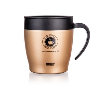 Termohrnek TAZZA 330ml hnědý; Dvoustěnný cestovní termohrnek TAZZA v bronzové barvě, je vhodný na teplé i studené nápoje. Vnější část je vyrobena z nerezi 201, vnitřní část z nerezi 304 a víčko z plastu. Využitelný objem je 330 ml. Tělo hrnku je vakuové, udrží nápoje déle horké či studené, víčko je nepropustné.