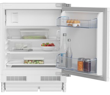 vestavná lednice s mrazicí přihrádkou • energetická třída E • objem chladničky 92 litrů • objem mrazničky 15 litrů • hlučnost 37 dB • klimatická třída SN-T • chlazení MinFrost • možnost změny závěsu dveří • akumulační doba 8 h • mrazicí kapacita 2,5 kg/den • LED osvětlení • 82×59,5×54,5 cm • vestavný spotřebič bez dekorativního opláštění
