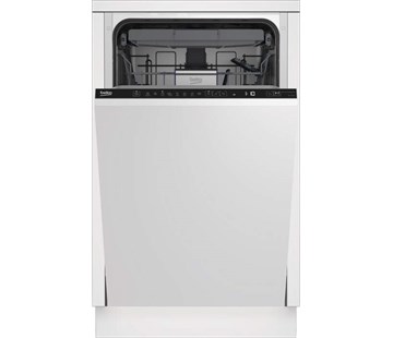 vestavná myčka nádobí • energetická třída E • kapacita 11 sad nádobí • hlučnost 46 dB • 6 programů • příborová zásuvka • rychlý program • signalizace provozu světelným paprskem na podlahu • ovládací panel • sklopné držáky nádobí • 3 sprchovací úrovně • senzor špinavé vody • WaterSafe+ • 81,8×44,8×55 cm
