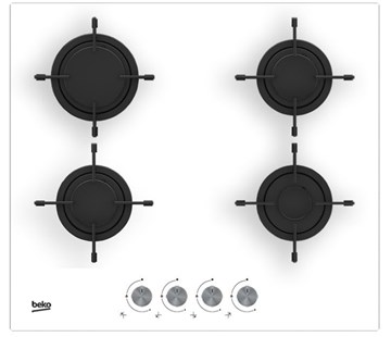 plynová varná deska • 4 hořáky • bezpečnostní pojistka proti zhasnutí plamene • smaltová mřížka • integrované zapalování • mechanické ovládání • šířka 58 cm