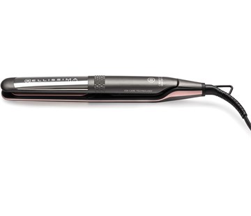 S žehličkou na vlasy Bellissima 11876 své kadeře snadno narovnáte i natočíte. Keramicko-diamantová žehlicí plocha je napuštěna pečujícím keratinem. Unikátní povrch vaše vlasy vyživí a zároveň se postará o to, aby jednotlivé prameny po 110 mm dlouhých žehlicích destičkách jemně klouzaly. K přirozené hydrataci vlasů přispívá také ionizační technologie, která současně brání nežádoucímu krepatění. Vybírat můžete z 5 teplotních nastavení, a to v rozmezí od 150 do 230 °C. Pro vaše pohodlí jsou ovládací prvky a LED displej umístěny uvnitř přístroje. Nemusíte se tedy obávat, že nedopatřením změníte teplotu nebo žehličku na vlasy zcela vypnete. |