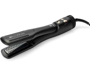 | Žehlicí plocha se speciální povrchovou úpravou z keramiky a keratinu dodá vlasům přirozený lesk a vitalitu. Ionizační technologie zabrání nadměrnému vysušení vlasového jádra a nežádoucímu krepatění vytvořeného účesu. Unikátní systém Easy Brush využívá speciální štětiny, které během používání vlasy jemně rozčesávají a přispívají tak ke snazšímu narovnání. Přístroj je možné použít na mokré vlasy, ale skvěle se hodí také k rychlému stylingu již vyfénovaných vlasů. |