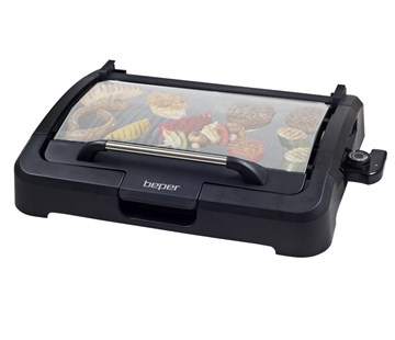 Elektrický gril Beper 90371 je vybaven praktickým víkem umožňujícím jednoduché zakrytí grilovací desky i s obsahem - lze ho však dle potřeby kompletně odejmout.