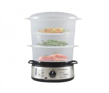 | V dnešní době už každý ví, že přemíra tuku v jídle není pro naše zdraví úplně ideální. Stejně tak mohou vysoké teploty při přípravě jídla zničit velkou část živin. Do módy proto přichází vaření v páře a firma Beper představuje svůj parní vařič BC250. Ten z často ne úplně jednoduchého procesu udělá záležitost, kterou zvládne klidně malé dítě. Základem zařízení je 1l nádoba na vodu, ocelová konstrukce a 3 průhledné plastové koše na potraviny s celkovým objemem 9 litrů. |