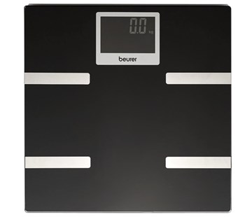 Osobní a diagnostická váha, měří: hmotnost, tuk, vodu, svalovinu, kosti, BMI, BMR a AMR, 5 úrovní aktivity, černý LCD displej s bílými číslicemi, maximální zatížení 180 kg.