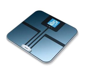 Analyzér Beurer BF 750 má skleněný, velký, dvojřádkový displej. Nechybí bezpečnostní ITO platforma s elektrodami zabudovanými ve skle. Váha měří hmotnost, tuk vodu v těle svalovinu, kosti a BMI + AMR.