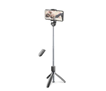 Bluetooth selfie tyč Cellularline Freedom s funkcí tripodu, černá. Díky svému univerzálnímu provedení se dokáže lehce proměnit z klasické Bluetooth selfie tyče v praktický stativ.