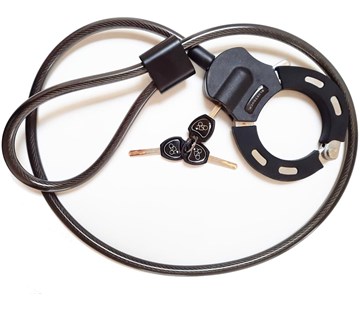 Délka lana 140 cm, celkový průměr lana 8 mm, vnitřní ocelové lano s vnějším ochranným pláštěm, vysoký stupeň ochrany - zamykání se západkou proti vylomení, otočné adaptabilní klepeto umožňuje pohodlnou manipulaci, hmotnost: 880 g, k dispozici sada 3 klíčů