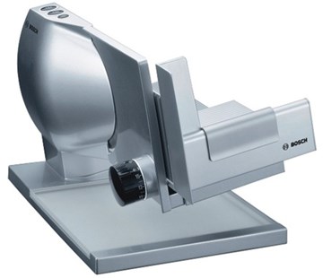 Elektrický kráječ BOSCH MAS 9501 N pracuje pomocí univerzálního vlnitě zbroušeného nože z nerezové oceli. Má přesné nastavení tloušťky řezu a úplné zakrytí nože. Integrovaná servírovací miska a speciální nůž na šunku. Speciální tlačítko na krájení sýrů s elektronickou redukcí rychlosti krájení.